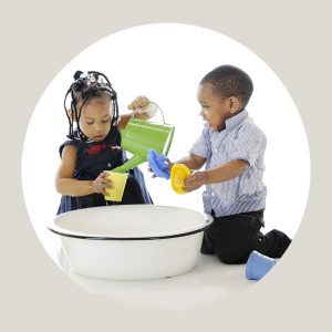 If it’s too hot to go outside, try a water activity inside. Although this is a little trickier because of the potential mess, all you need is water, different-sized plastic containers, funnels, scoops, dippers, spoons, sponges, sieves, etc. Young children will have a great sensory experience investigating size, depth, width, absorbency, and practicing pouring, transferring, and scooping. (You might want to put some plastic sheeting down and have some towels handy too.)